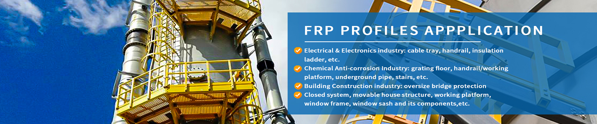 Hubei Yulong have constantly evolved our offerings in FRP grating, ladders, handrails and more. In line with this, we have grown in proficiency and capability in providing unique FRP solutions to a diversified range of industries like marine, mining, public infrastructure, oil and gas, and food and beverage sectors to name a few. The advancement of our products made from this unique anti-slip material is aimed at securing extended design life in different types of applications.